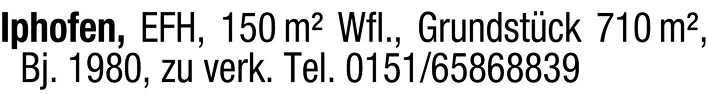 Iphofen, EFH, 150 m Wfl., Grundstck 710 m, Bj. 1980, zu verk. Tel. 0151/65868839