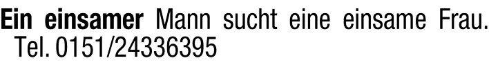 Ein einsamer Mann sucht eine einsame Frau.
