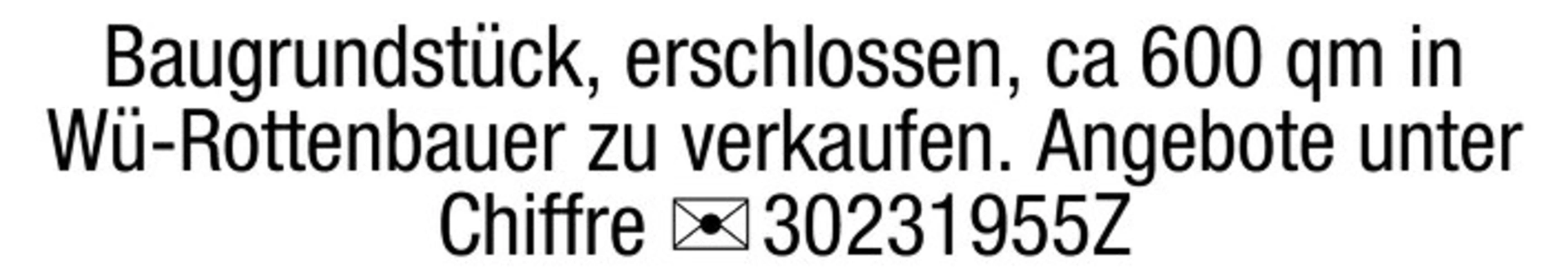 Baugrundstck, erschlossen, ca 600 qm in W-Rottenbauer zu verkaufen. Angebote unter Chiffre Chiffre 30231955