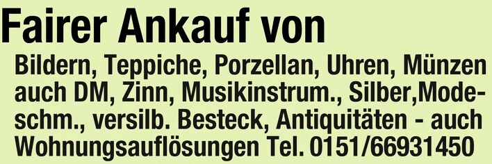 Fairer Ankauf: Bilder, Teppiche, Porzellan, Uhren, Silber