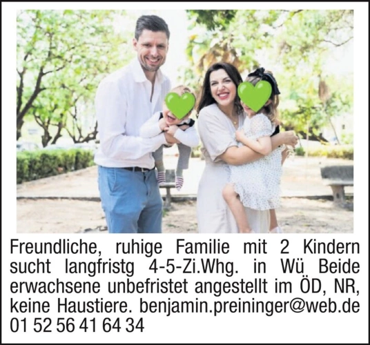 Freundliche, ruhige Familie mit 2 Kindern sucht langfristig 4-5-Zimmer Wohnung in W.