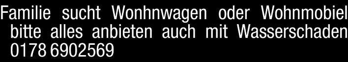 Familie sucht Wohnwagen oder Wohnmobil. Bitte alles anbieten, auch mit Wasserschaden.