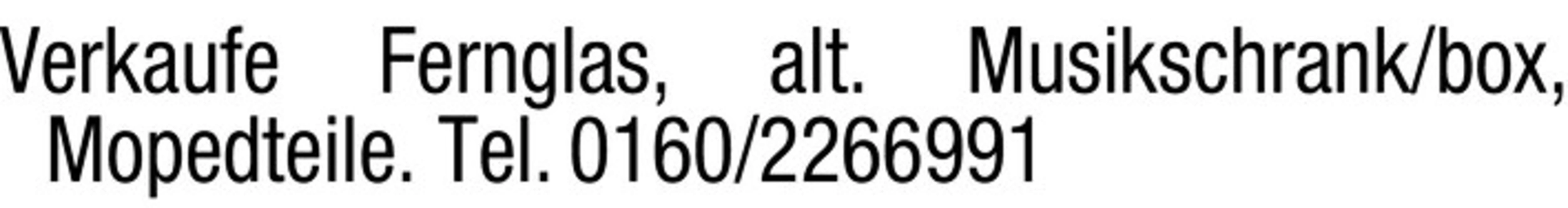 Verkaufe Fernglas, alt. Musikschrank/box, Mopedteile. Tel. 0160/2266991