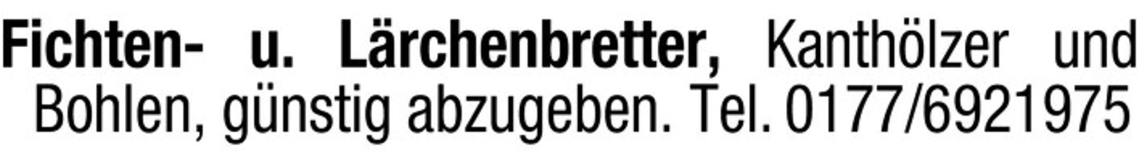 Fichten- u. Lärchenbretter, Kanthölzer und Bohlen, günstig abzugeben. Tel. 0177/6921975