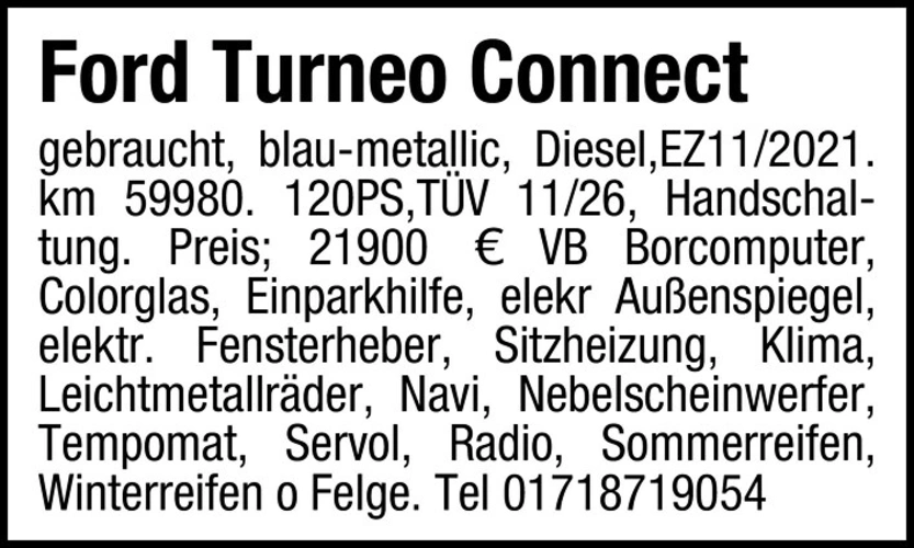 Ford Turneo Connect Diesel, EZ 11/2021, 59980 km