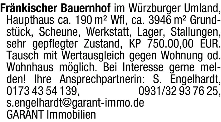 Fränkischer Bauernhof mit Scheune und Stallungen im Würzburger Umland