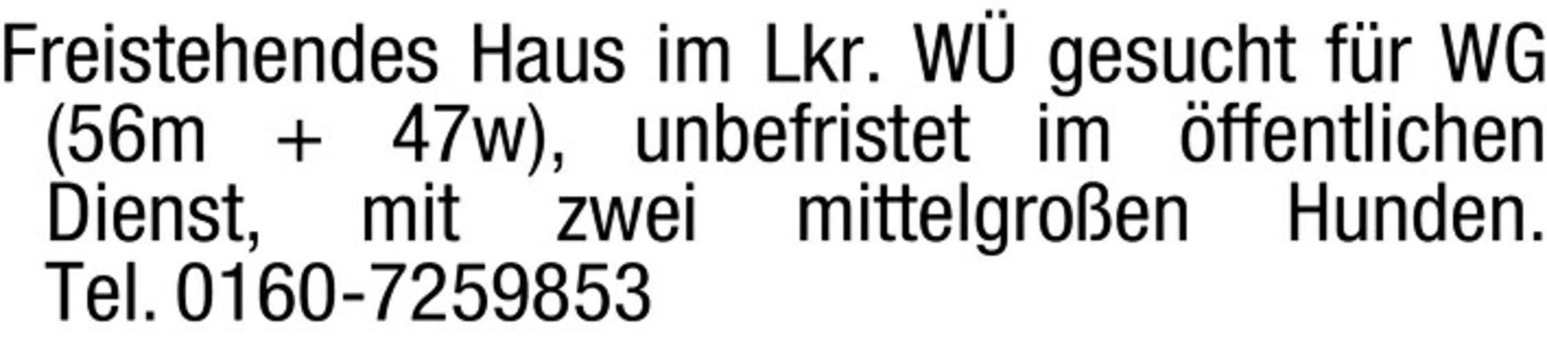 Freistehendes Haus im Lkr. W gesucht fr WG (56m + 47w), unbefristet im ffentlichen Dienst, mit zwei mittelgroen Hunden.