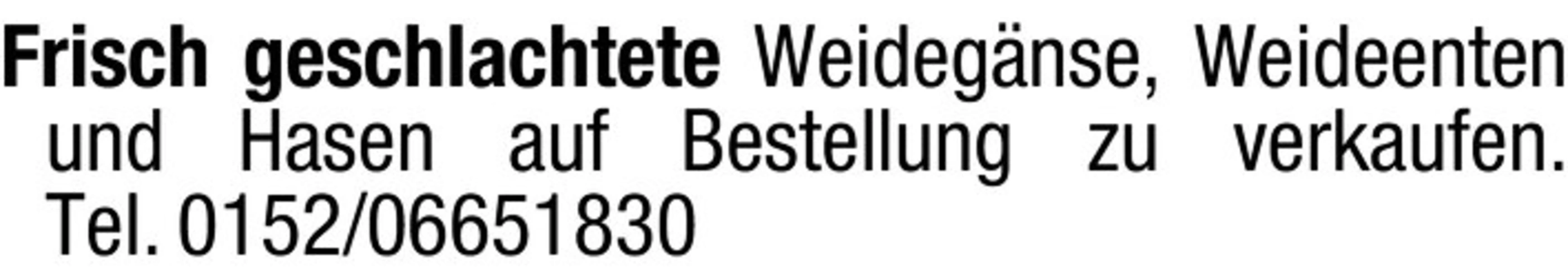 Frisch geschlachtete Weidegnse, Weideenten und Hasen auf Bestellung.