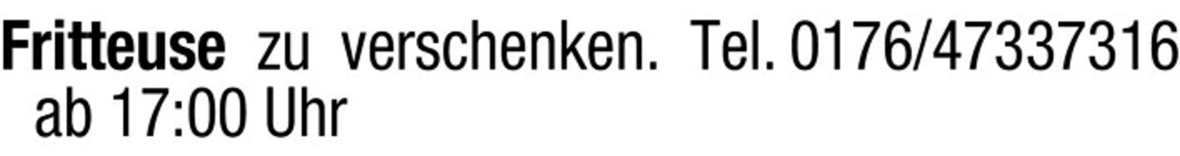 Fritteuse zu verschenken, Anruf ab 17:00 Uhr