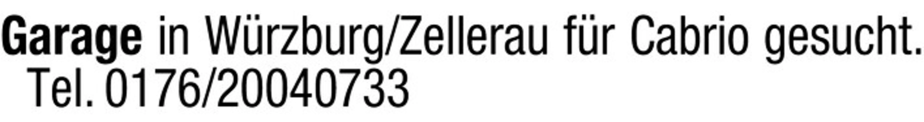 Garage in Wrzburg/Zellerau fr Cabrio gesucht. Tel. 0176/20040733