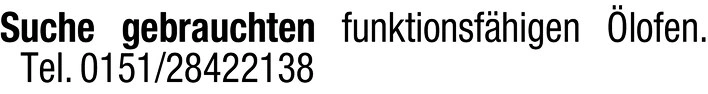 Gebrauchter funktionsfähiger Ofen gesucht, Tel. 0151/28422138
