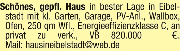 Schönes, gepflegtes Haus in bester Lage in Eibelstadt mit kleinem Garten, Garage, PV-Anlage, Wallbox, Ofen, 250 qm Wohnfläche, Energieeffizienzklasse C, an privat zu verkaufen, Verhandlungsbasis 820.000 .