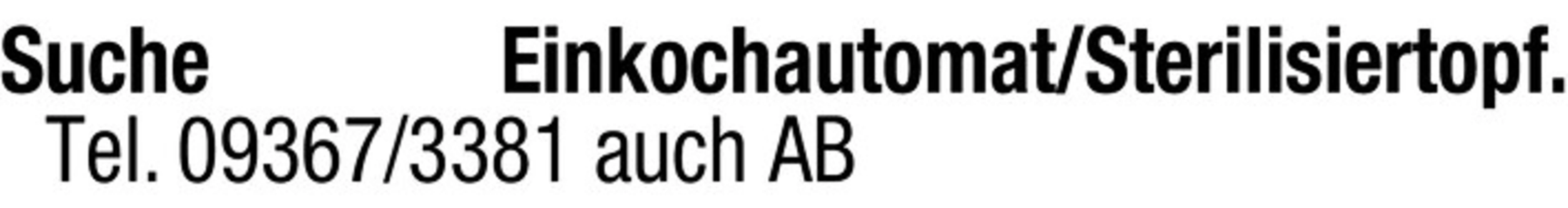 Suche Einkochautomat/Sterilisiertopf. Tel. 09367/3381 auch AB