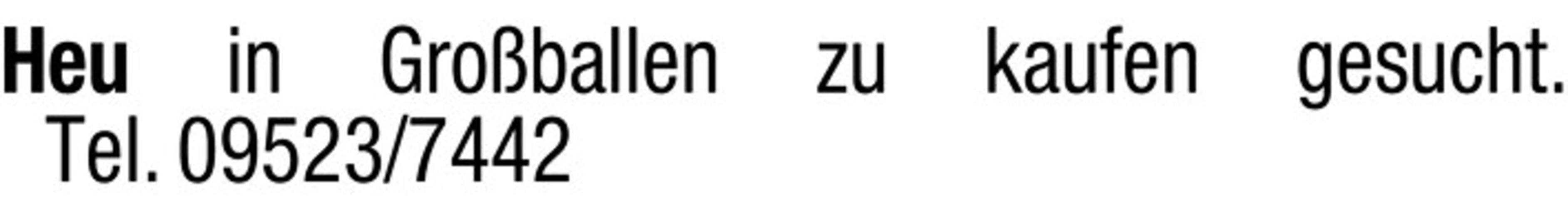 Gesucht: Heu in Groballen Kontakt Tel. 09523/7442