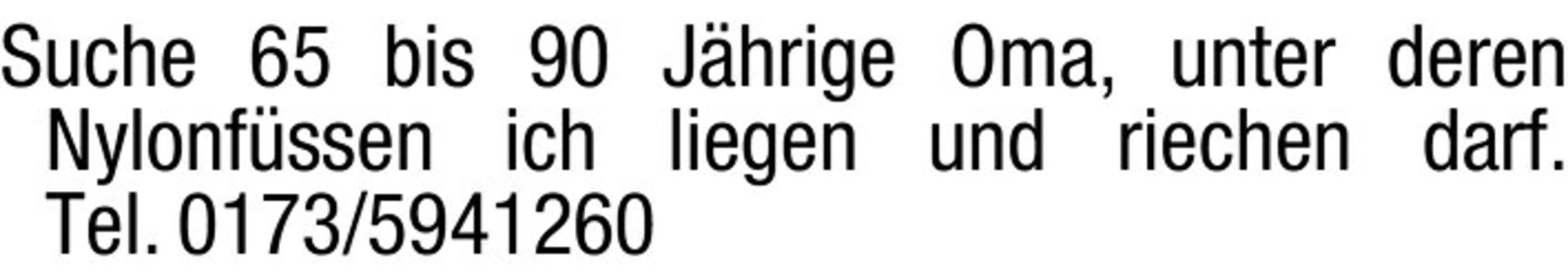 Suche 65 bis 90 Jhrige Oma, unter deren Nylonfüssen ich liegen und riechen darf.