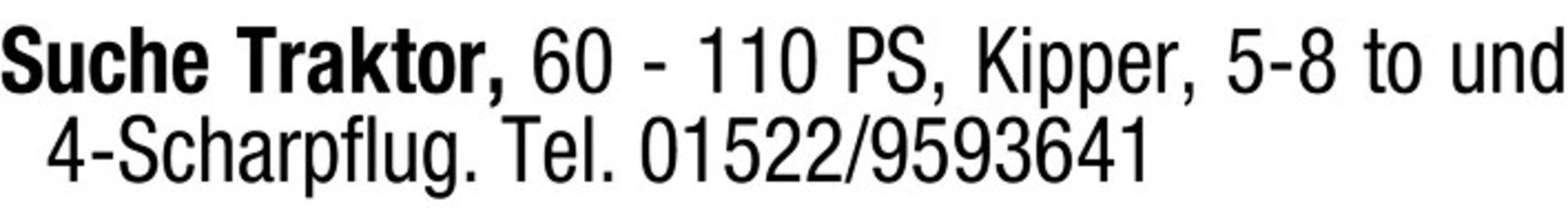 Suche Traktor, 60 - 110 PS, Kipper, 5-8 to und 4-Scharpflug. Tel. 01522/9593641