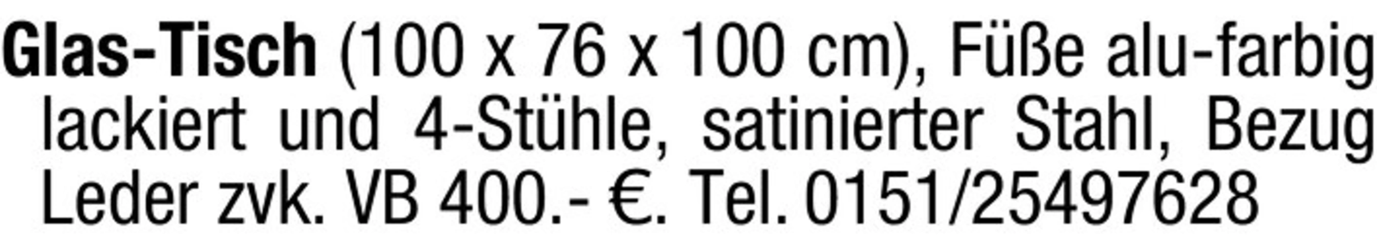 Glas-Tisch und 4 Stühle in Alu-Farbe
