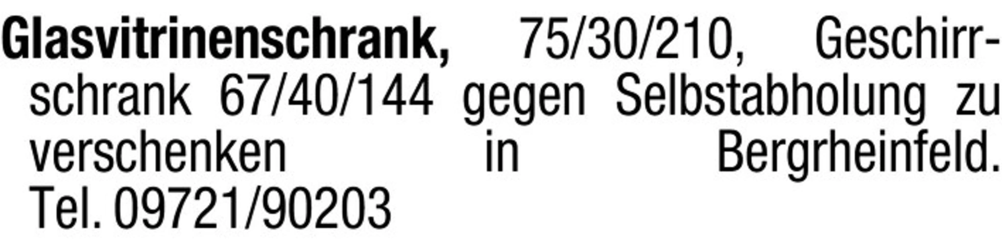 Glasvitrinenschrank und Geschirrschrank in Bergrheinfeld