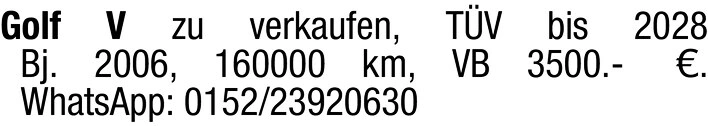 Kontakt: WhatsApp: 0152/23920630