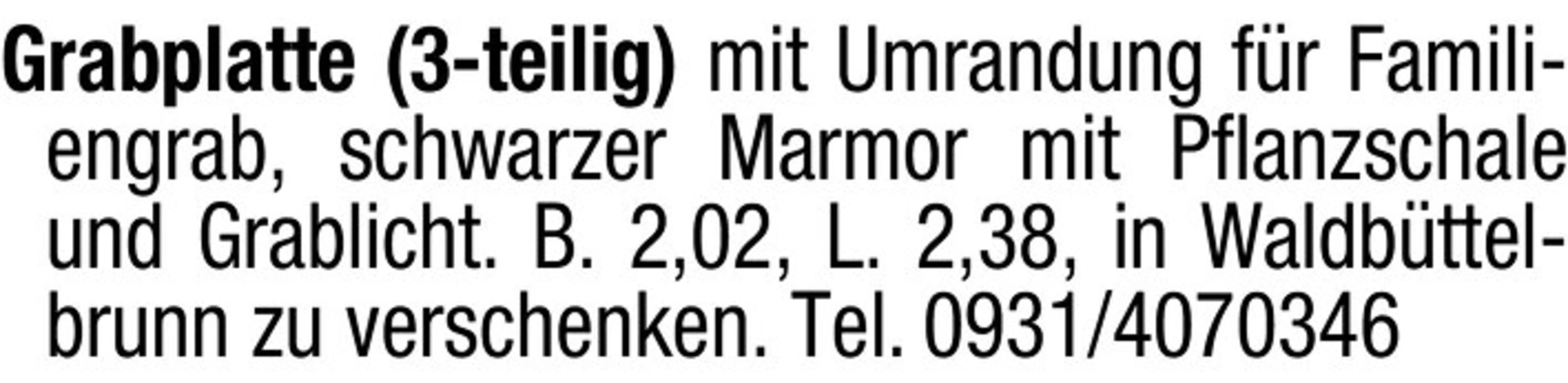 B. 2,02, L. 2,38, in Waldbüttelbrunn zu verschenken.