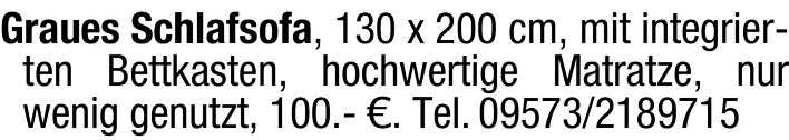 Graues Schlafsofa, 130 x 200 cm, mit integrierten Bettkasten, hochwertige Matratze, nur wenig genutzt, 100.-
