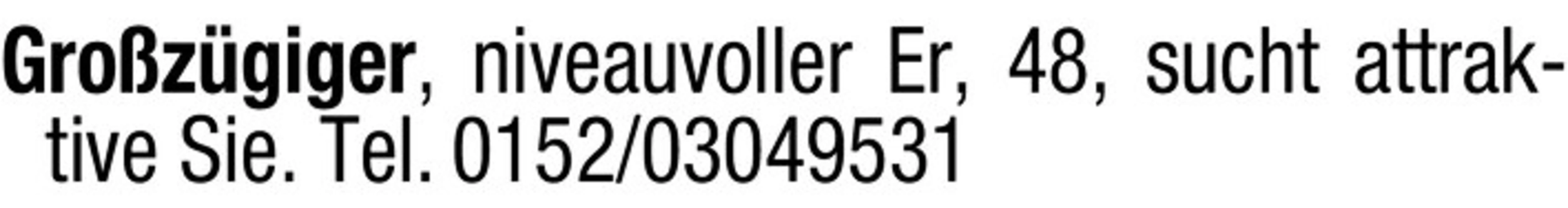 Grozgiger, niveauvoller Er, 48, sucht attraktive Sie. Tel. 0152/03049531