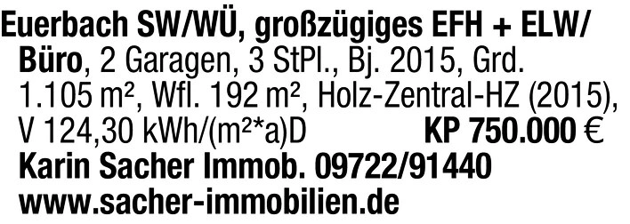 Euerbach SW/W - Großzügiges Einfamilienhaus + Einliegerwohnung/Büro