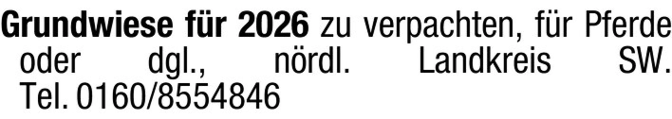 Grundwiese fr 2026 zu verpachten, fr Pferde oder dgl., nrdl. Landkreis SW.Tel. 0160/8554846