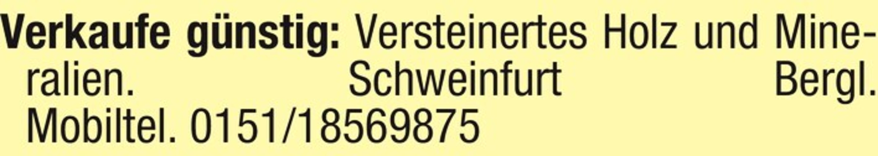 Verkaufe gnstig: Versteinertes Holz und Mineralien. Schweinfurt Bergl. Mobiltel. 0151/18569875