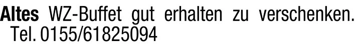 Altes WZ-Buffet gut erhalten zu verschenken. Tel. 0155/61825094