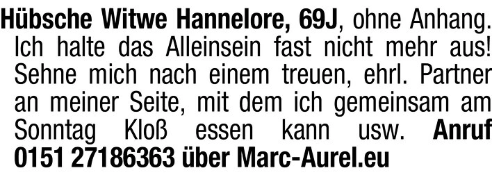 Hübsche Witwe Hannelore, 69 Jahre, ohne Anhang.