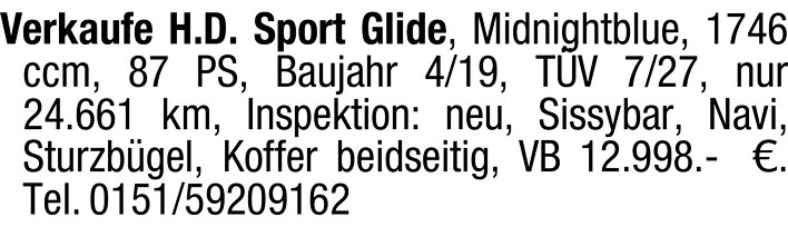 Harley-Davidson Sport Glide 1746ccm Midnight Blue 24.661km