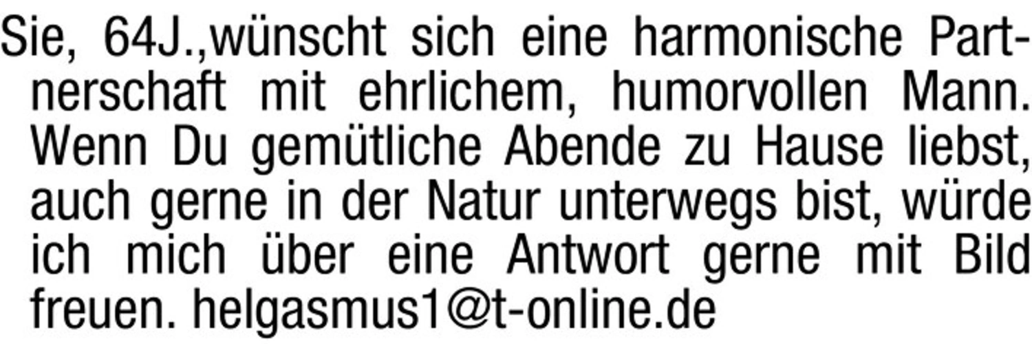 Ich wünsche mir eine harmonische Partnerschaft mit einem ehrlichen, humorvollen Mann.