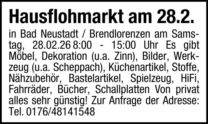 Hausflohmarkt am 28.2. in Bad Neustadt / Brendlorenzen