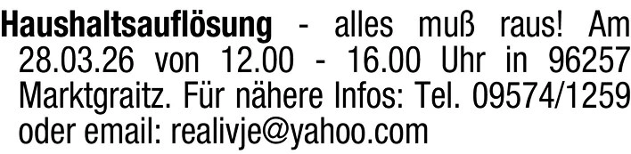 Haushaltsauflösung Marktgraitz am 28.03.26