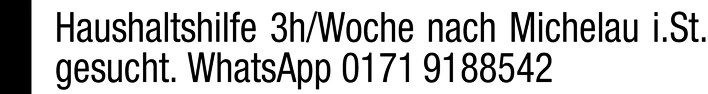 Haushaltshilfe 3h/Woche nach Michelau i.St. gesucht.