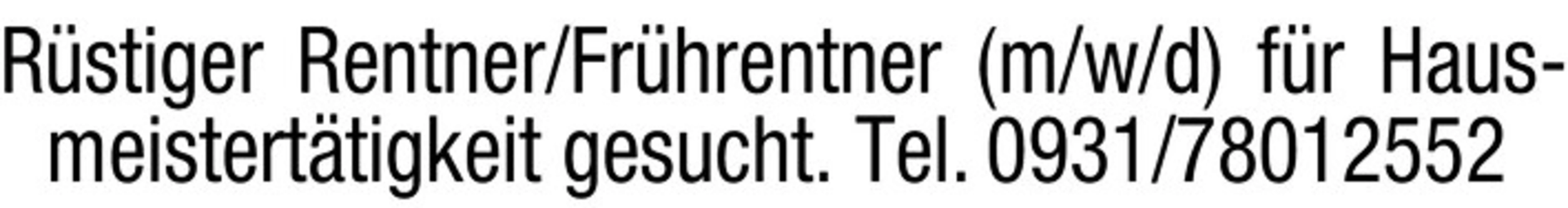 Rstiger Rentner/Frhrentner (m/w/d) für Hausmeistertätigkeit gesucht.