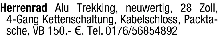 Herrenrad Alu Trekking 28 Zoll, neuwertig, 4-Gang
