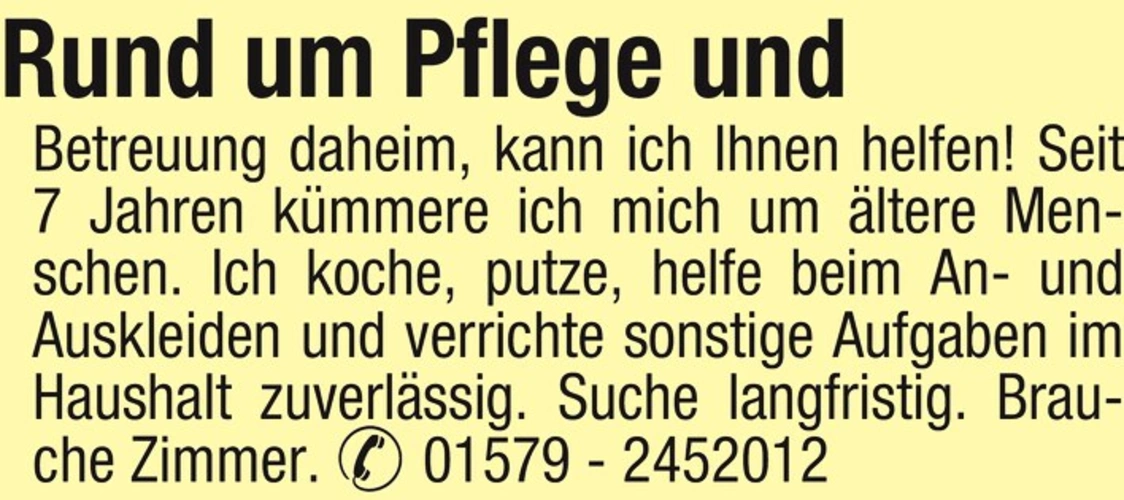 Rund um Pflege und Betreuung daheim, kann ich Ihnen helfen!