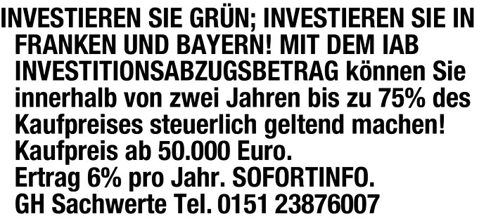 INVESTIEREN SIE GRN; INVESTIEREN SIE IN FRANKEN UND BAYERN!