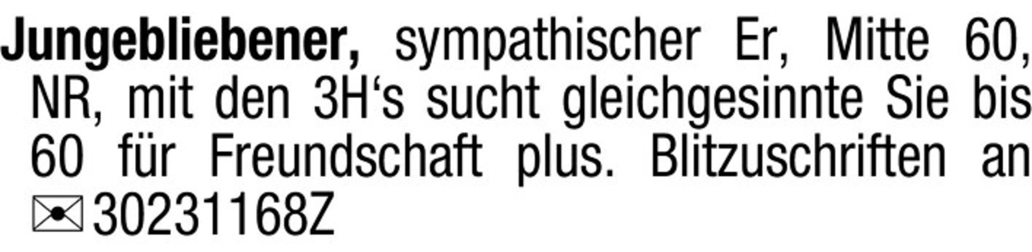 Jungebliebener, sympathischer Er, Mitte 60, NR, mit den 3Hs sucht gleichgesinnte Sie bis 60 fr Freundschaft plus.