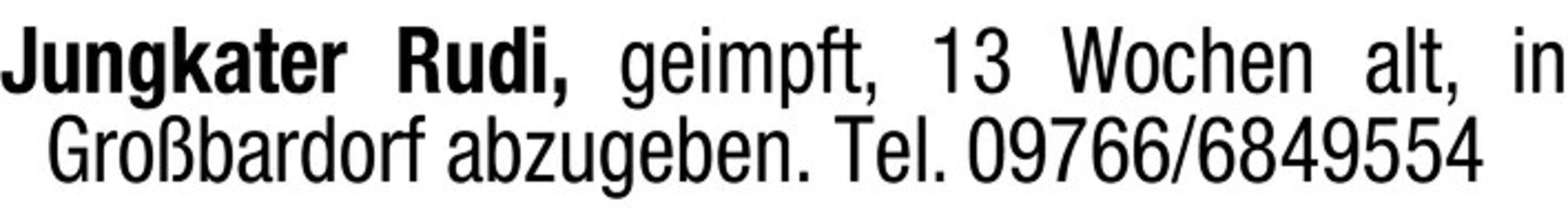 Jungkater Rudi, geimpft, 13 Wochen alt, in Grobardorf abzugeben.
