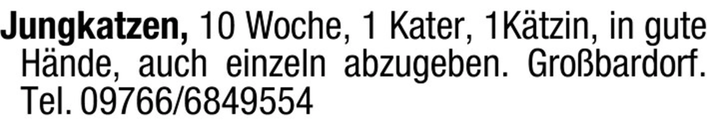 Jungkatzen, 10 Woche, 1 Kater, 1 Kätzin, in gute Hände, auch einzeln abzugeben.