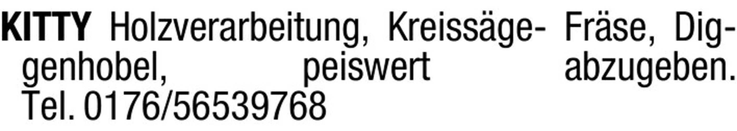 text KITTY Holzverarbeitung, Kreissge- Frse, Diggenhobel, peiswert abzugeben. Tel. 0176/56539768