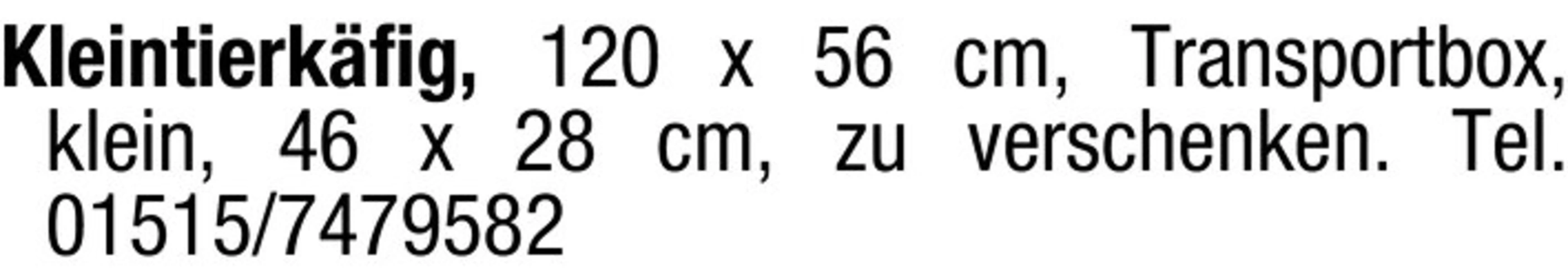 Kleintierkäfig und Transportbox kostenlos verfügbar