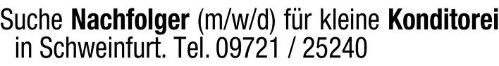 Konditorei Schweinfurt sucht Nachfolger/in