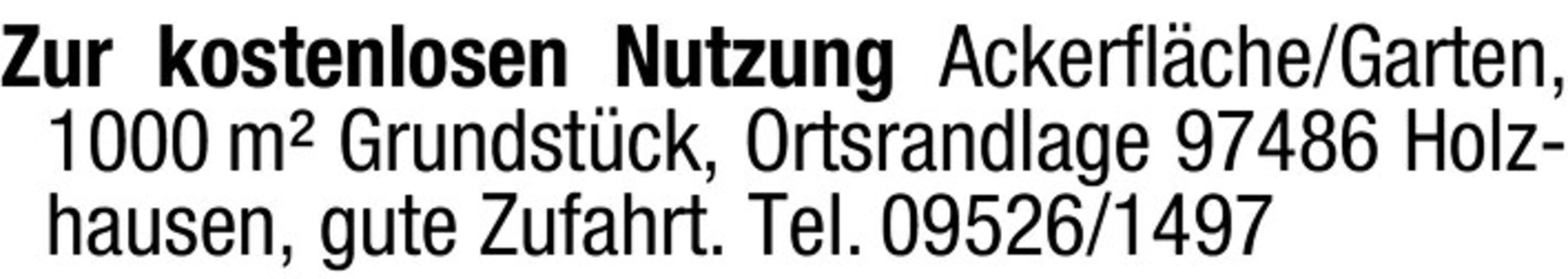 Ackerfläche/Garten, 1000 m² Grundstück, Ortsrandlage 97486 Holzhausen, gute Zufahrt.