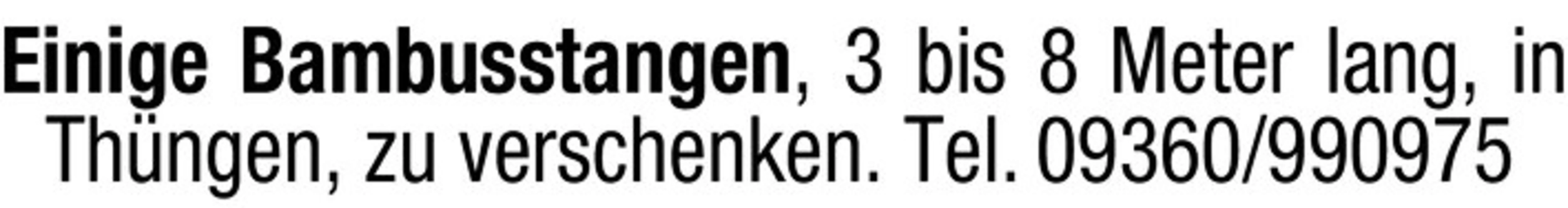 Einige Bambusstangen, 3 bis 8 Meter lang, in Thngen, zu verschenken. Tel. 09360/990975
