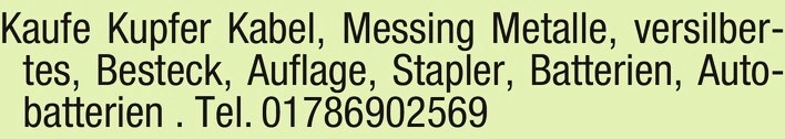 Kupfer, Kabel, Messing und Metalle angekauft