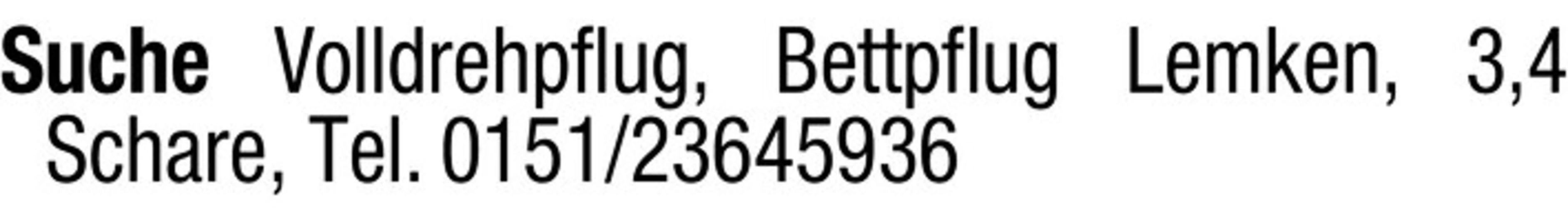Suche Volldrehpflug, Bettpflug Lemken, 3,4 Schare, Tel. 0151/23645936